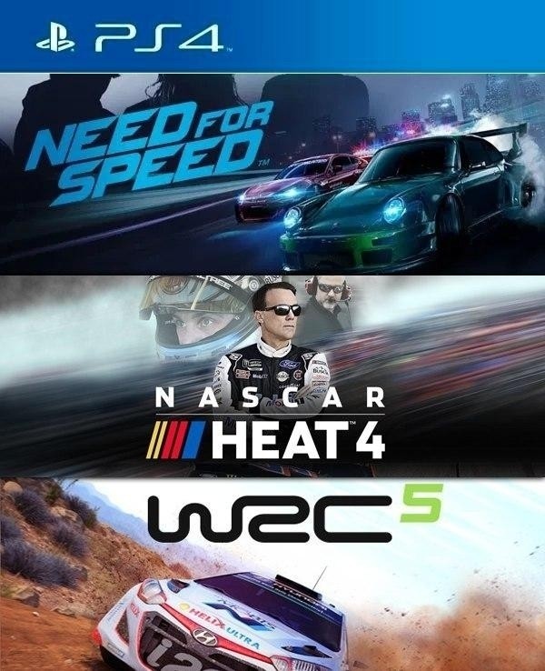 3 JUEGOS EN 1 NEED FOR SPEED MAS NASCAR HEAT 4 MAS WRC 5 FIA WORLD RALLY CHAMPIONSHIP PS4